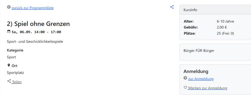 Anmeldungen sind ganz einfach online unter dem folgenden Link möglich, solange noch Plätze frei sind.
